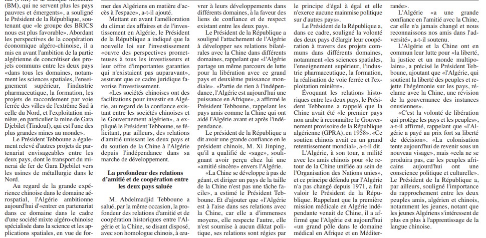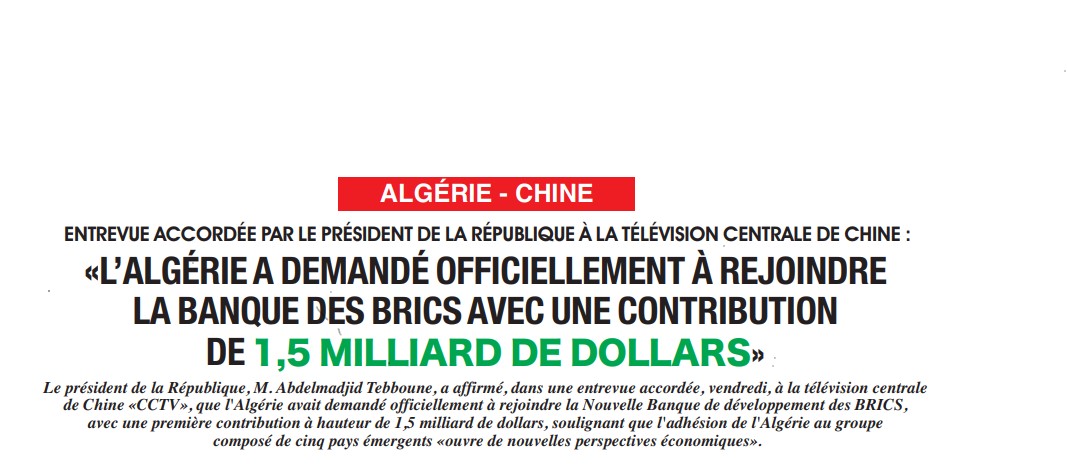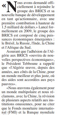 Algérie - Chine - Les BRICS