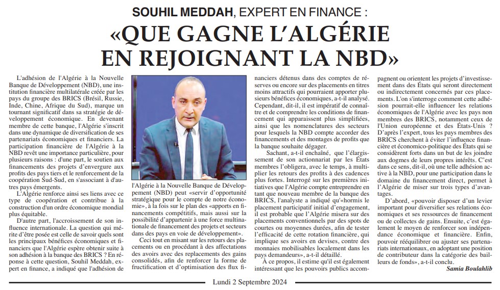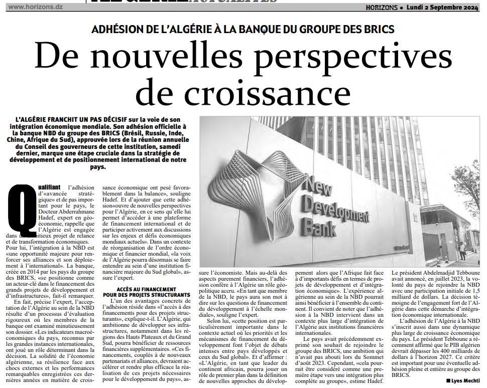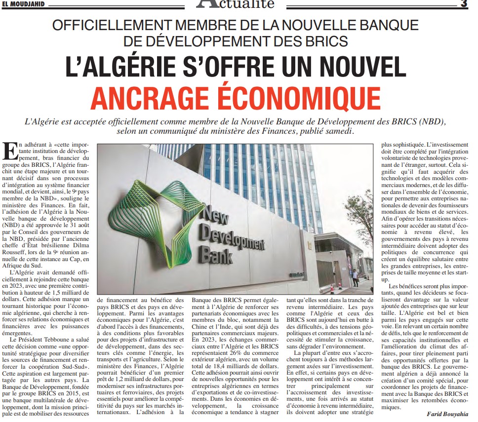 L’Algérie, la nouvelle banque de développement (NBD), les BRICS et la Révolution