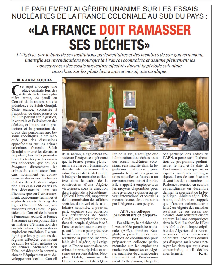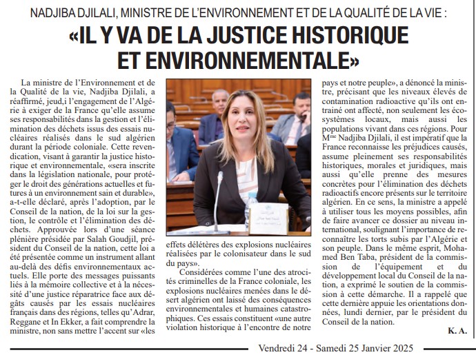 24/01/2025 Nettoyer les déchets nucléaires de la France en Algérie - Résolution anti-algérienne du Parlement européen