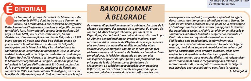 « L'Humanité » et le Marocgate - Algérie et Mouvement des non-alignés