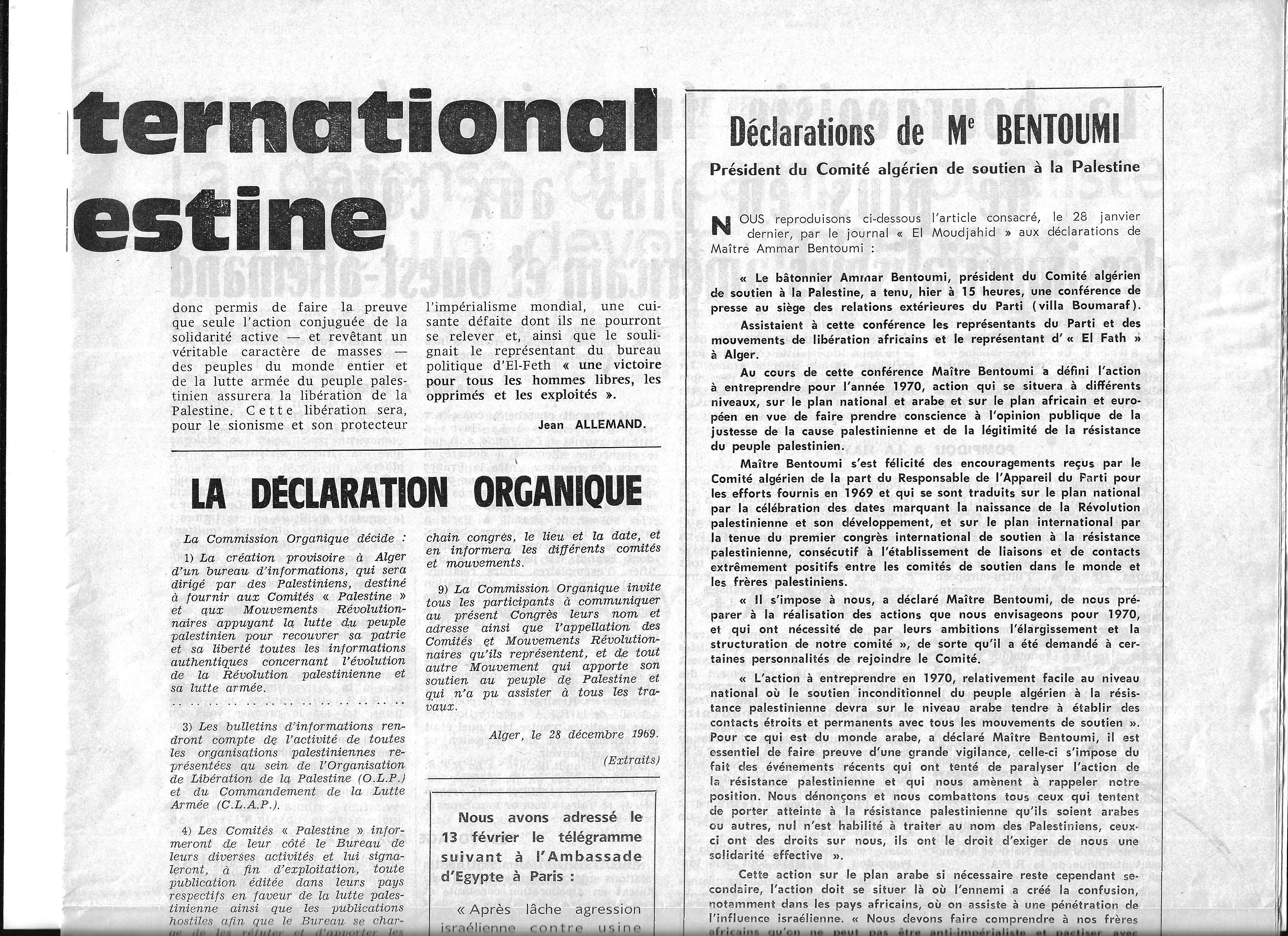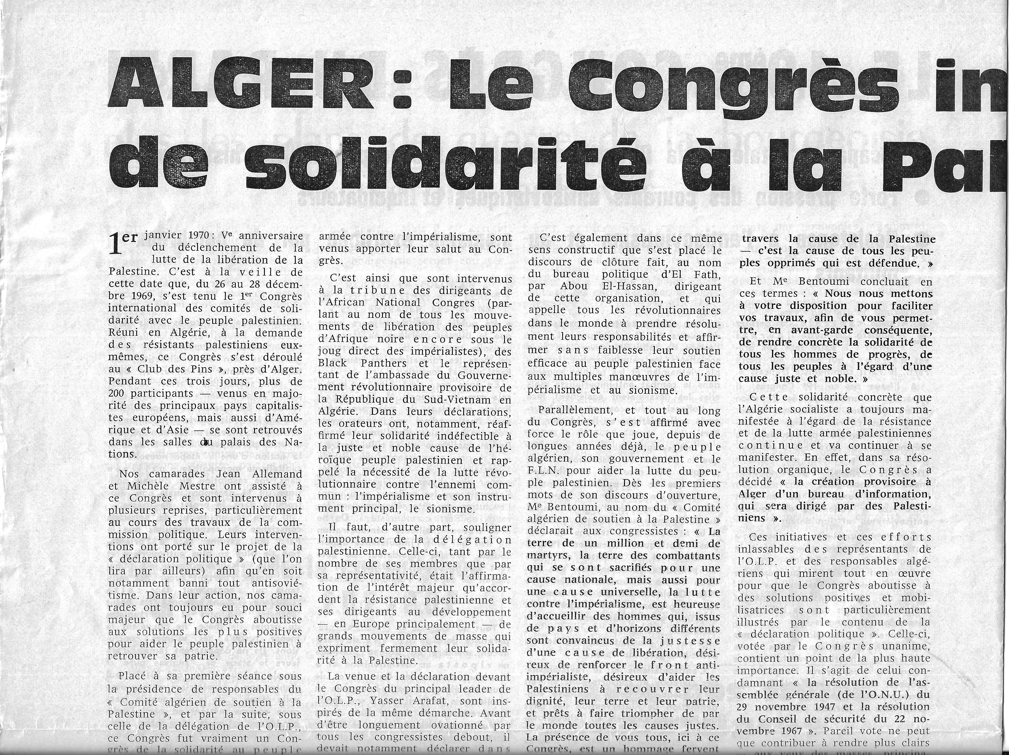 17/04/2023 1er Congrès des comités Palestine - Alger - 26-28 décembre 1969 - Michèle Mestre - Jean Allemand
